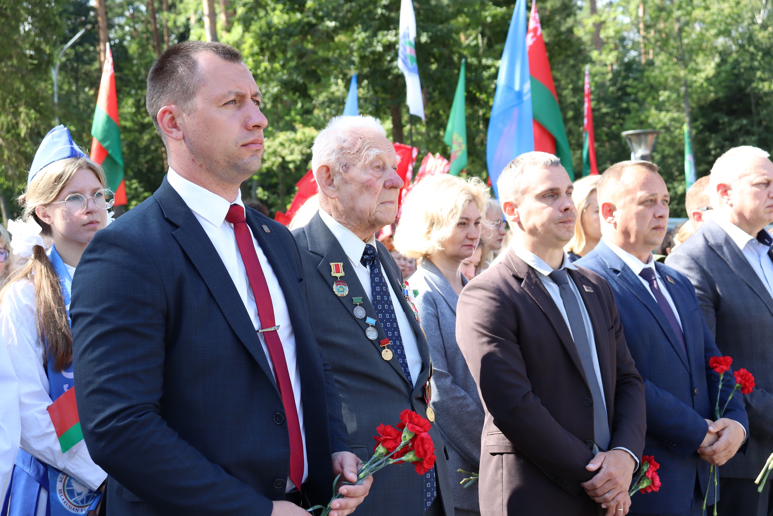 На памятной стеле состоялся торжественный митинг с участием председателя Гомельского городского исполнительного комитета В.А. Привалова, ветеранов, молодёжи, представителей различных организаций г. Гомеля.