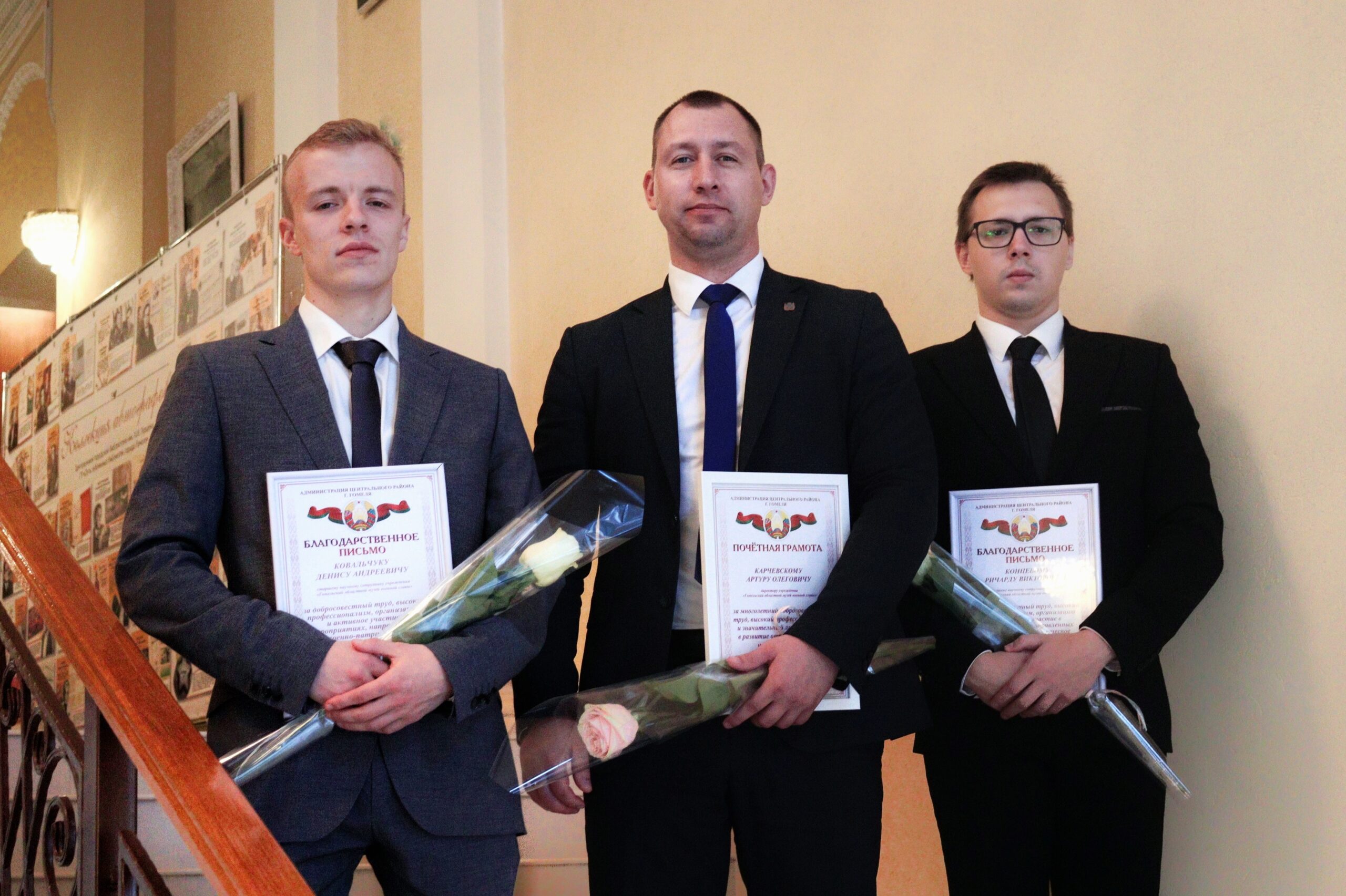 В рамках проведения праздничных мероприятий, посвященных Дню работников культуры, 9 октября на базе Центральной городской библиотеки им А.И.Герцена состоялось торжественное чествование лучших представителей сферы культуры организаций Центрального района города Гомеля. Наград были удостоены сотрудники учреждения «Гомельский областной музей военной славы»: директор учреждения Карчевский Артур Олегович, старшие научные сотрудники Ковальчук Денис Андреевич и Концевой Ричард Викторович. Поздравляем наших коллег!!!!