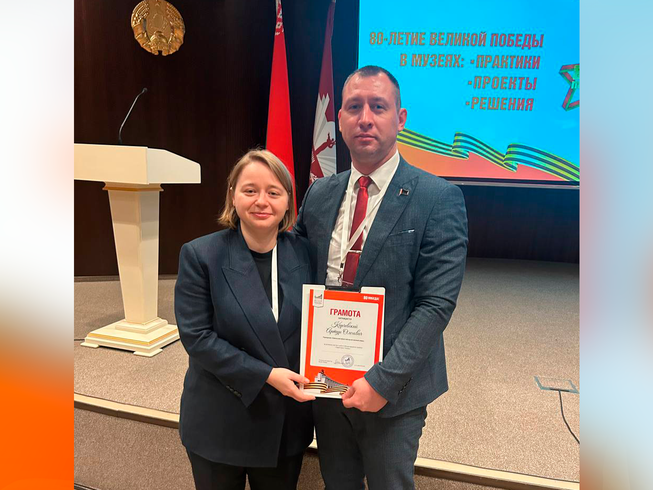 23 декабря 2025 года сотрудники учреждения «Гомельский областной музей военной славы» приняли участие в Международной научно-практической конференции «80-летие Великой Победы в музеях: практики, проекты, решения», которая проходила на базе белорусского государственного музея истории Великой Отечественной войны в г.Минске. Директор учреждения Карчевский Артур Олегович рассказал о проектах и достижениях Гомельского областного музея военной славы в год Великой Победы. За активную и плодотворную работу в рамках Международного проекта «Территория Победы» Карчевскому А.О. была вручена Грамота от генерального директора Музея Победы (г.Москва) Школьника А.Я.