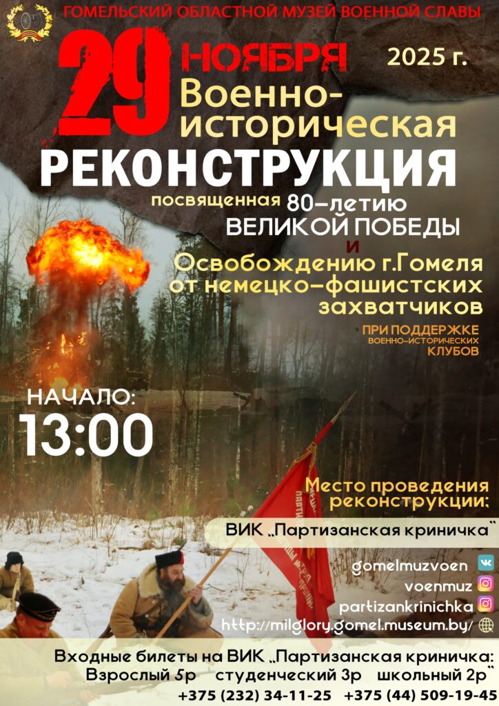 19-20 ноября 2025 года в городе Брянске (Российская Федерация) проходит II Международная научно-практическая конференция «Геноцид советского народа. План рейха. Жестокие уроки истории», в которой принимают участие сотрудники учреждения «Гомельский областной музей военной славы». Директор учреждения Карчевский Артур Олегович выступил на пленарном заседании с темой доклада «Роль учреждения «Гомельский областной музей военной славы» в сохранении исторической …